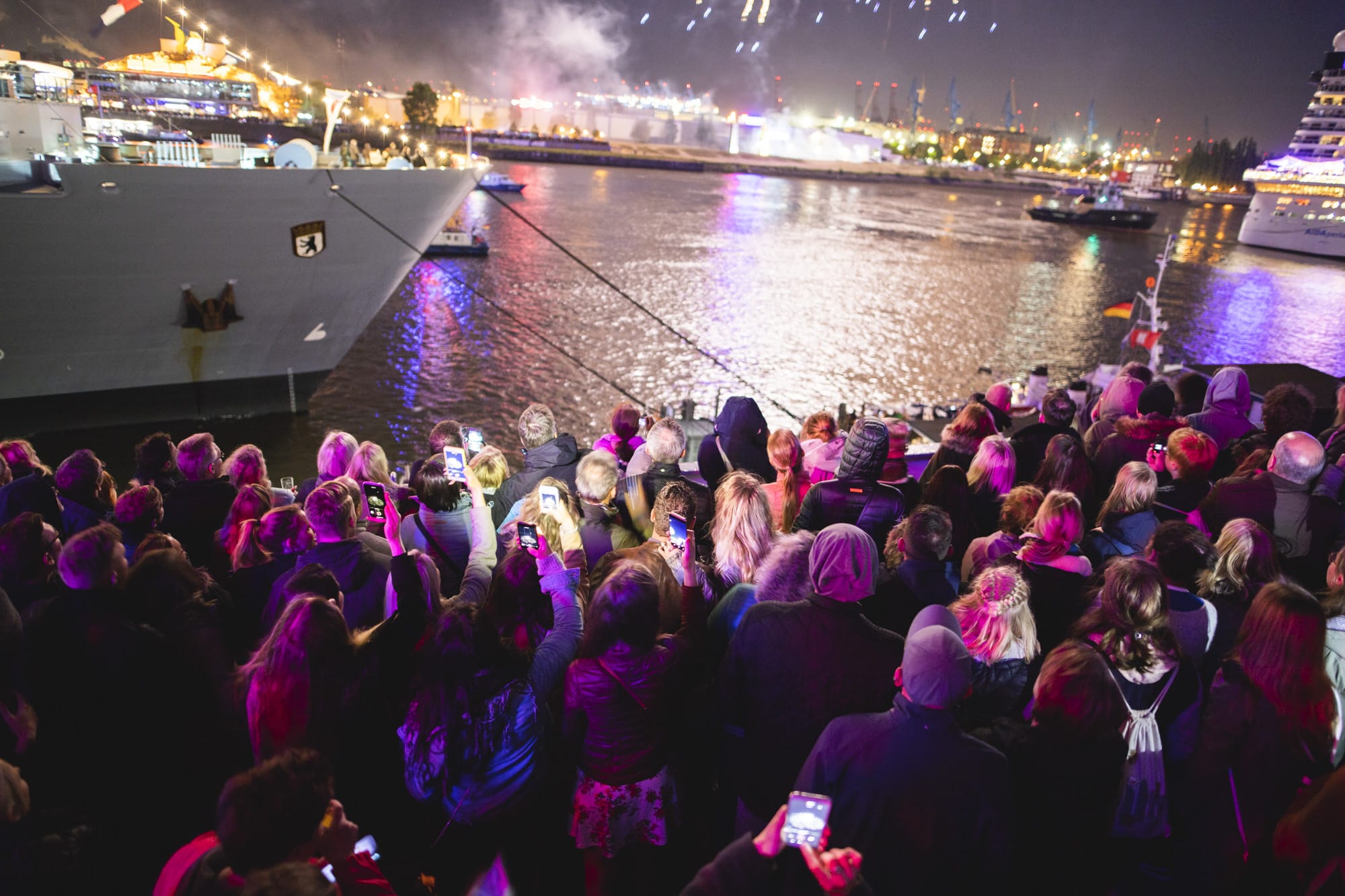 Blick aufs große Hafenfeuerwerk vom Freideck