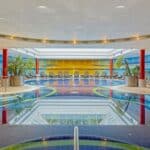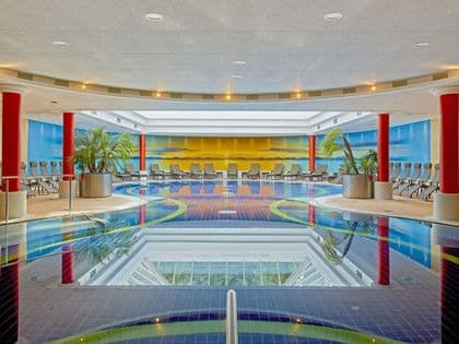 Hallenbad (20 x 10 m, 28 °C), Gegenstromanlage, Massagedüsen, finnische Saunen (70/80/90 °C), Dampfbäder, Sanarium, Tauchbecken, Fitness, Beauty & Massagen.