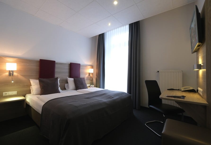 Die Zimmer verfügen je nach Kategorie über Doppelbett oder getrennte Betten, Bad oder Dusche/WC, Föhn, TV und Telefon. Die Superior-Zimmer bieten zusätzlich Couch sowie Kaffee- und Teezubereiter.