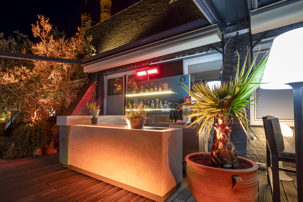 Ja. Der Außenbereich ist teilweise überdacht und mit Heizstrahlern ausgestattet, sodass auch an Silvester eine angenehme Atmosphäre unter freiem Himmel entsteht.