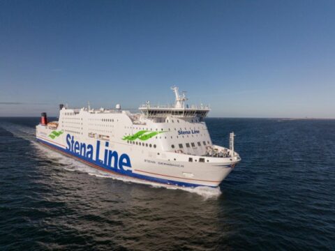Fähre von Finnlines auf See bei Sonnenuntergang an Silvester
