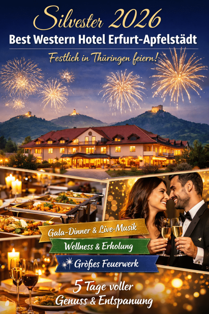 Silvester 2026 im Best Western Hotel Erfurt-Apfelstädt – festlicher Jahreswechsel zwischen Erfurt und Thüringer Burgenlandschaft Warum dieses Hotel zum Jahreswechsel so gut passt Endet der Dezember, suchen viele Menschen Ruhe sowie Erholung. Das Best Western Hotel Erfurt-Apfelstädt bietet genau diesen Ort für einen stilvollen Übergang. Das Haus liegt im beschaulichen Nesse-Apfelstädt im Thüringer Kernland. Von […]