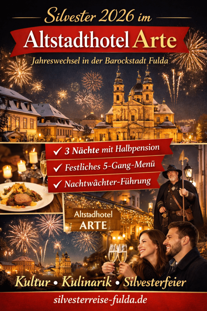 Altstadthotel Arte Silvester 2026 in Fulda erleben Warum Fulda zum Jahreswechsel überzeugt Reisende finden in Fulda zum Jahresende eine gelungene Mischung aus Kultur, Geschichte und winterlicher Ruhe. Die barocken Gebäude der Stadt, der Dom und das Stadtschloss schaffen einen stimmungsvollen Rahmen für die Zeit zwischen den Jahren. Das Altstadthotel Arte Silvester 2026 nutzt diese besondere […]