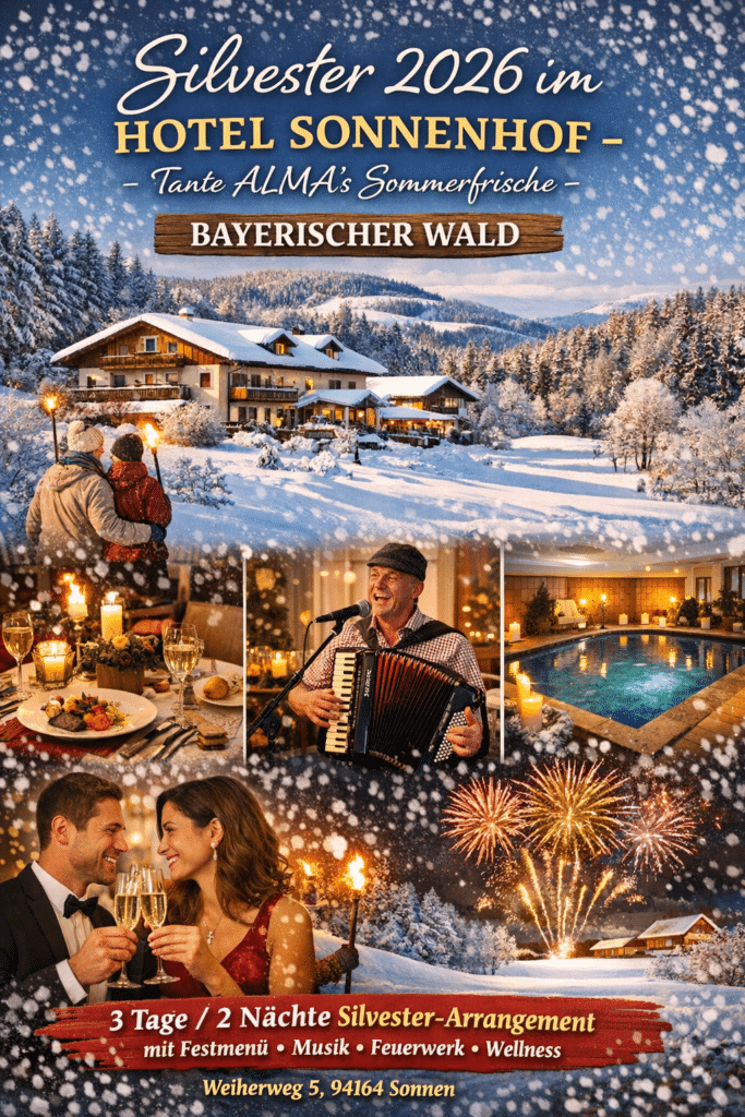 Silvester 2026 im Hotel Sonnenhof – Tante ALMA’S Sommerfrische im Bayerischen Wald erleben Wenn der Jahreswechsel nach Ruhe, Genuss und echter Winterstimmung klingen soll Es gibt Orte, die gerade zum Jahreswechsel ihren ganz eigenen Zauber entfalten. Das Hotel Sonnenhof – Tante ALMA’S Sommerfrische in Sonnen gehört genau zu diesen Adressen. Wer Silvester 2026 nicht in […]