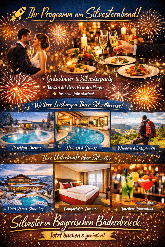 Silvester 2026 im Hotel Resort Birkenhof: Galadinner, Musik und tägliche Therme