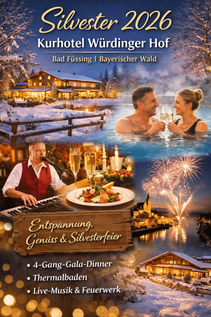 Kurhotel Würdinger Hof in Bad Füssing – Jahreswechsel im Bäderdreieck Silvester 2026 im niederbayerischen Thermenparadies Das Kurhotel Würdinger Hof empfängt seine Gäste mitten in Niederbayern als Teil des Bayerischen Bäderdreiecks. Diese Gegend zieht viele Menschen an, die Ruhe sowie Gesundheit suchen. Zu Silvester 2026 zeigt Bad Füssing seine ruhige Seite: Kalte Luft kühlt das Gesicht, […]