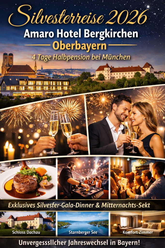 Erleben Sie Silvester 2026 im Amaro Hotel Bergkirchen und genießen Sie den Jahreswechsel in Oberbayern zwischen Stadt und Natur. Das Hotel liegt westlich von München nahe der Wiesen und Wälder rund um Dachau. So verbindet Ihre Reise Entspannung im Dachauer Umland mit kurzen Wegen in die Stadt – perfekt für eine Winterauszeit mit festlichem Anlass. […]