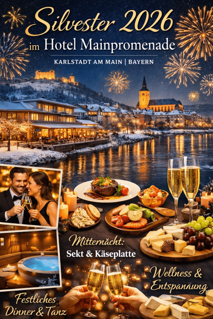 Silvester 2026 im Hotel Mainpromenade in Karlstadt – Jahreswechsel am Main genießen Wer das Jahr ohne Hektik beenden möchte, findet mit Silvester 2026 im Hotel Mainpromenade in Karlstadt eine gelungene Mischung aus Ruhe, Genuss und festlicher Stimmung. Das familiengeführte Haus steht unmittelbar am Ufer des Mains. Es verbindet fränkische Gastfreundschaft mit einem freien Blick auf […]