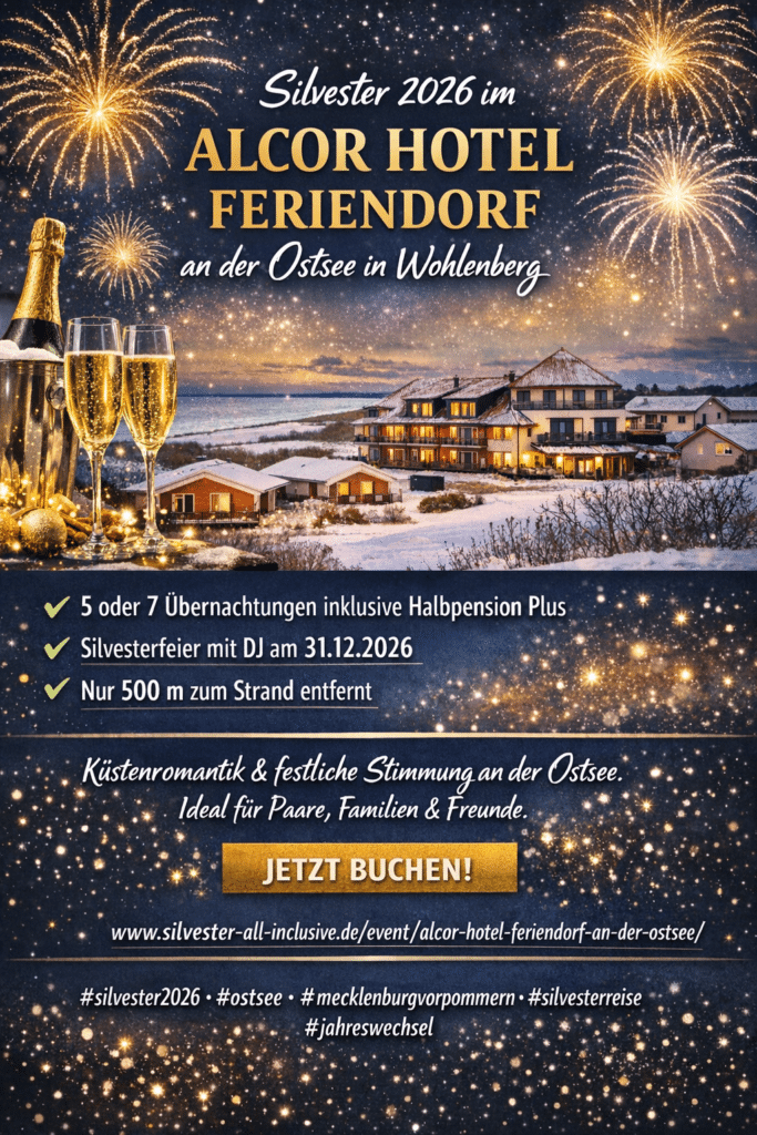 Silvester 2026 im Alcor Hotel Feriendorf an der Ostsee in Wohlenberg – Jahreswechsel zwischen Meer und Winterzauber Wenn der Winter die Küste in eine ruhige, fast magische Landschaft verwandelt, ist der perfekte Moment gekommen für eine besondere Auszeit am Meer. Silvester 2026 im Alcor Hotel Feriendorf an der Ostsee in Wohlenberg verspricht genau diese Kombination […]