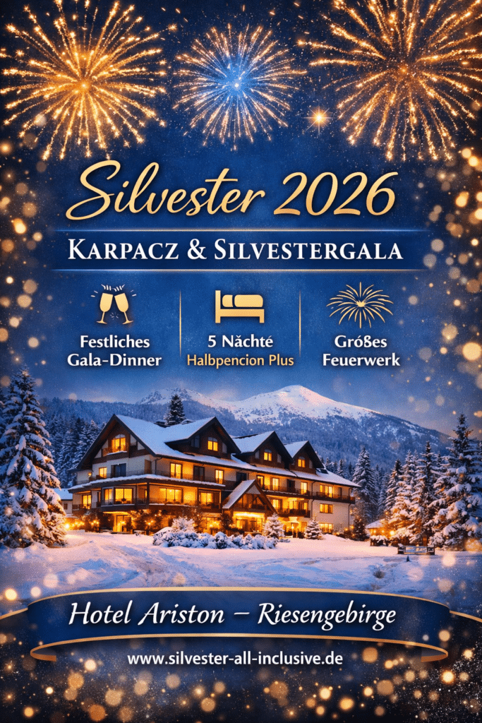 Silvester 2026 im Hotel Ariston in Karpacz – Jahreswechsel im Riesengebirge Winterliche Bergromantik in Niederschlesien Wenn sich das Riesengebirge in eine glitzernde Winterlandschaft verwandelt, beginnt im Hotel Ariston in Karpacz eine ganz besondere Zeit. Silvester 2026 verspricht hier eine Kombination aus Naturerlebnis, festlicher Stimmung und kulinarischem Genuss. Eingebettet in die beeindruckende Bergwelt der Woiwodschaft Niederschlesien […]