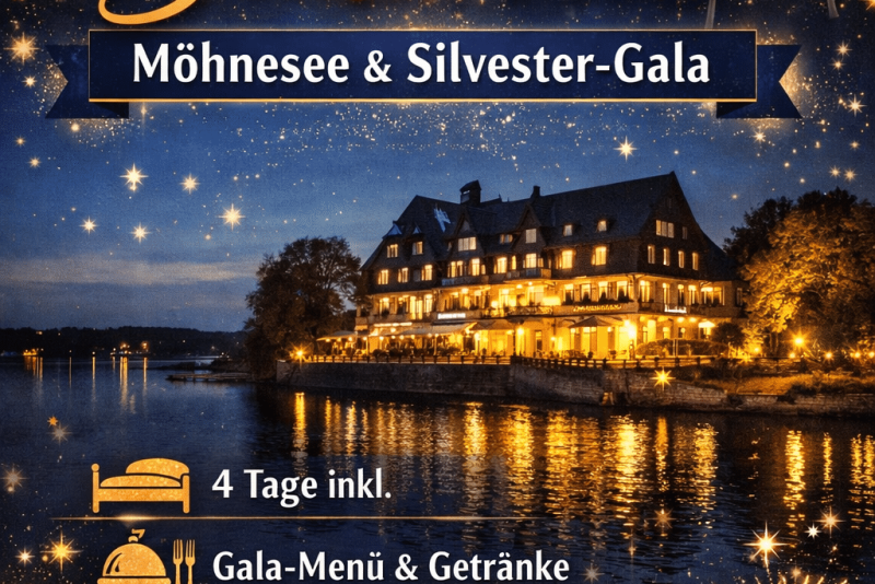 Ein Jahreswechsel am Wasser hat seinen ganz eigenen Zauber – und genau hier setzt Silvester 2026 im Haus Delecke an. Direkt am Möhnesee in Nordrhein-Westfalen gelegen, bietet das Haus eine Atmosphäre, die gleichzeitig ruhig, stilvoll und festlich wirken kann. Während draußen die Uferwege und die Parklandschaft winterlich wirken, erleben Sie drinnen ein Hotelambiente, das auf Genuss, Gastlichkeit und besondere Momente ausgerichtet ist. Wer sich nach einer Auszeit sehnt, die nicht nur aus Party besteht, sondern auch aus echten Erholungstagen, findet mit dem Haus Delecke eine passende Bühne. Die Kombination aus Naturkulisse und festlichem Programm macht diese Reise zu einer klaren Empfehlung für Paare, Freunde und alle, die Silvester 2026 bewusst gestalten möchten.