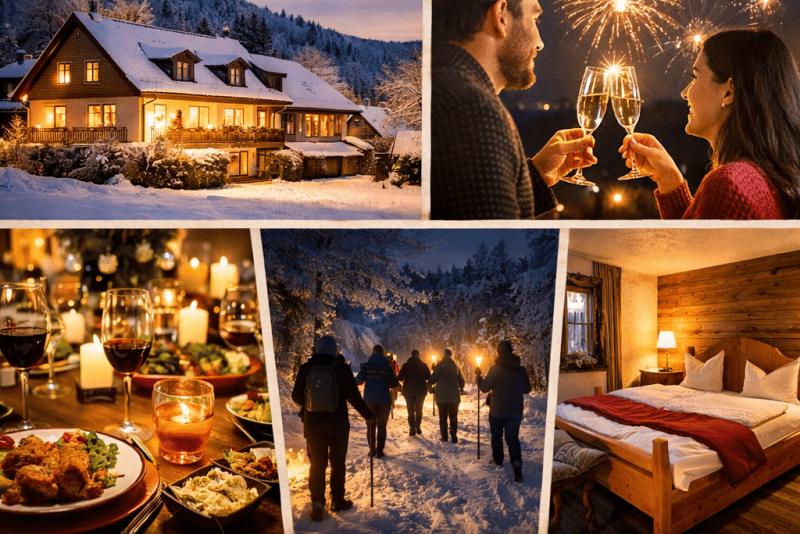 Das Angebot im Landhotel zur Grünen Kutte richtet sich vor allem an Erwachsene, Paare und Ruhesuchende. Da keine Kinder hinzugebucht werden können, bleibt die Atmosphäre bewusst entspannt und ruhig. Auch Haustiere sind auf Anfrage erlaubt, was das Angebot zusätzlich attraktiv macht. Wer Silvester 2026 in einer natürlichen Umgebung, mit gutem Essen und ohne Hektik verbringen möchte, findet hier die passende Option. Die Kombination aus Landschaft, familiärem Hotel und durchdachtem Silvesterprogramm macht dieses Arrangement zu einer hervorragenden Wahl für einen gelungenen Jahreswechsel.